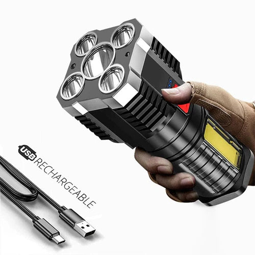 Com seus 5 LEDs ela garante um feixe de luz mais amplo e forte, iluminando 4x mais que uma lanterna convencional e garantindo um campo de visão maior no escuro. Produzida com material Abs ela é extremamente resistente até mesmo a grandes quedas, além do possuir proteção a prova d'água tornando-a uma lanterna ainda mais completa.